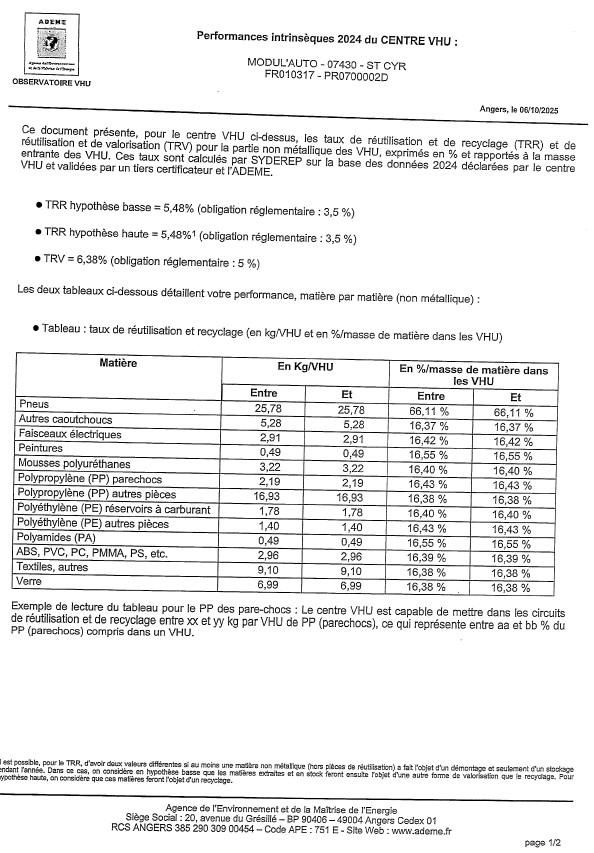 - par voie postale à l’adresse suivante : MODUL’AUTO zi de Prachenet 07430 ST CYR